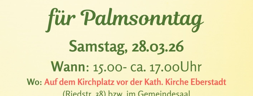 am Sonntag, 29.03.2026 um 9.00 Uhr in Weinsberg und um 10.30 Uhr in Ellhofen mit Palmprozession.