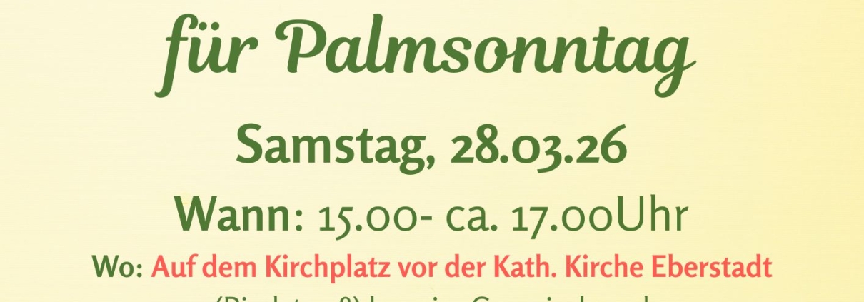 Wir feiern Eucharistie am Samstag, 28.03.2026 um 18.00 Uhr in Lehrensteinsfeld mit Palmprozession